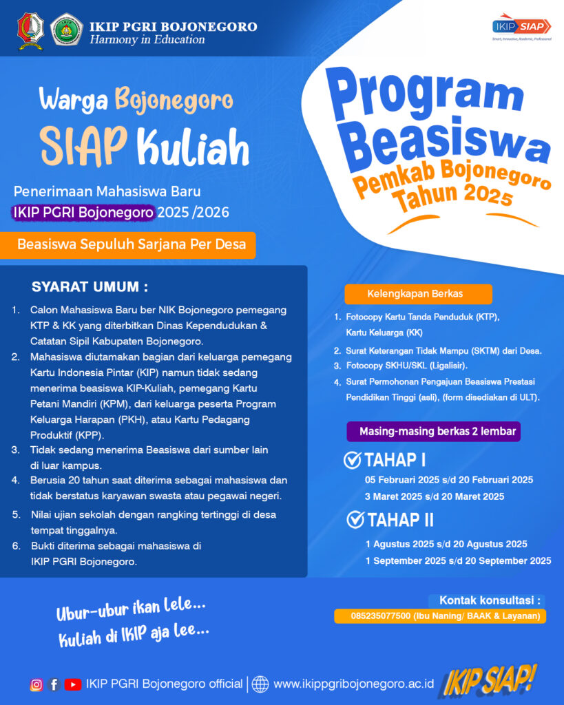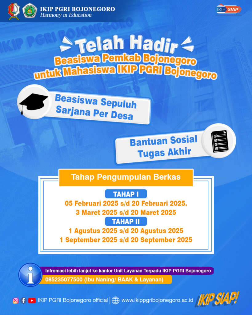 IKIP PGRI Bojonegoro memiliki lima Beasiswa yang terdiri :