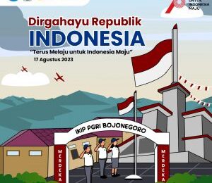IKIP PGRI Bojonegoro – Civitas Akademika IKIP PGRI Bojonegoro mengucapkan selamat memperingati Hari Kemerdekaan Republik Indonesia ke-78 “Terus Melaju Untuk Indonesia Maju” 17 Agustus 2023.