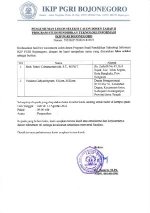 Pekan Olahraga dan Seni Nasional Mahasiswa akan segera dimulai. Mahasiswa IKIP PGRI Bojonegoro yang memiliki talenta fokus di bidang cabang olahraga yang tersedia dapat berkontribusi dalam ajang tahunan yang diselenggarakan oleh PT PGRI Se Indonesia.…
